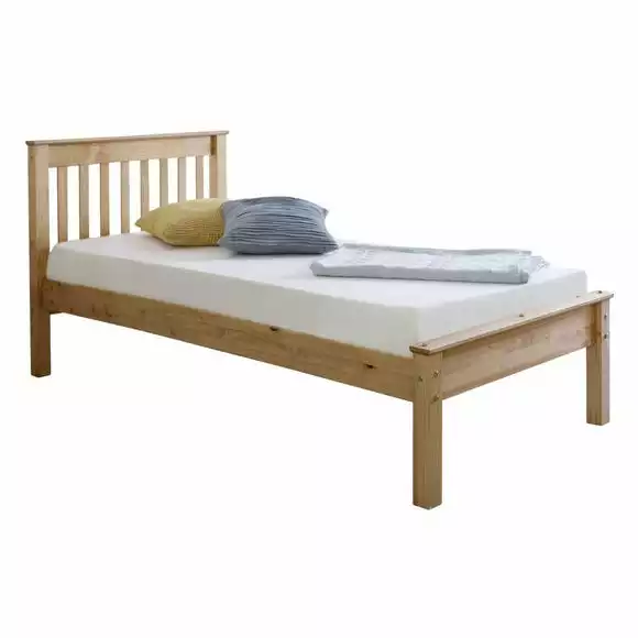A beautiful and simplistic bed frame made from strong pine and featuring a slatted base and headboard. Drift off to a comfortable sleep with the beautiful Chester Bed. This simple yet charming bed offers great value and quality. Mattress not included.