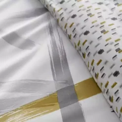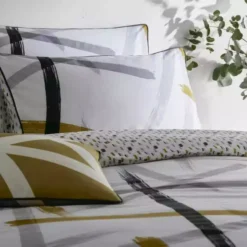 This bold graphic design will make the perfect bedroom statement piece with contrasting reverse for two looks in one and dainty piped edging to add a touch of class. In contemporary tones of grey and ochre over a crisp white background, this duvet cover and pillowcase set has been crafted from quality 180 thread count 100% cotton fabric that’s beautifully soft to the touch, creating the ultimate snuggle spot.