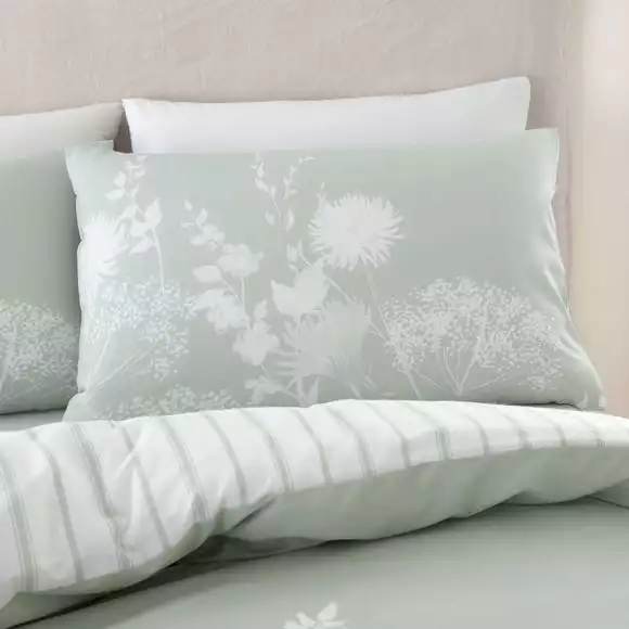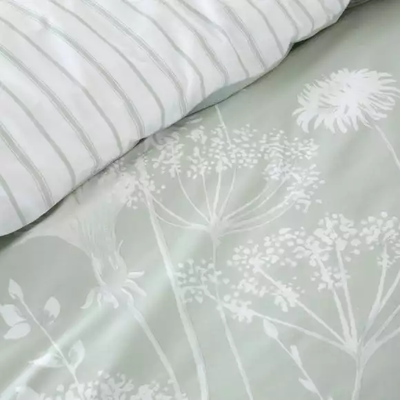 Catherine Lansfield Meadowsweet Floral Green Reversible Duvet Cover And Pillowcase Set