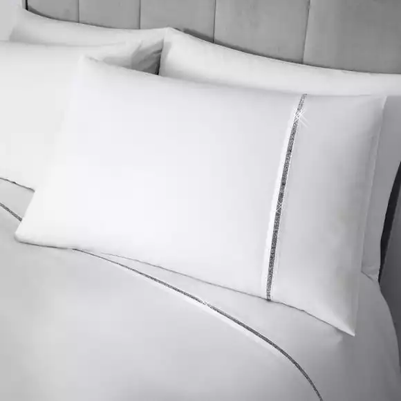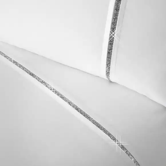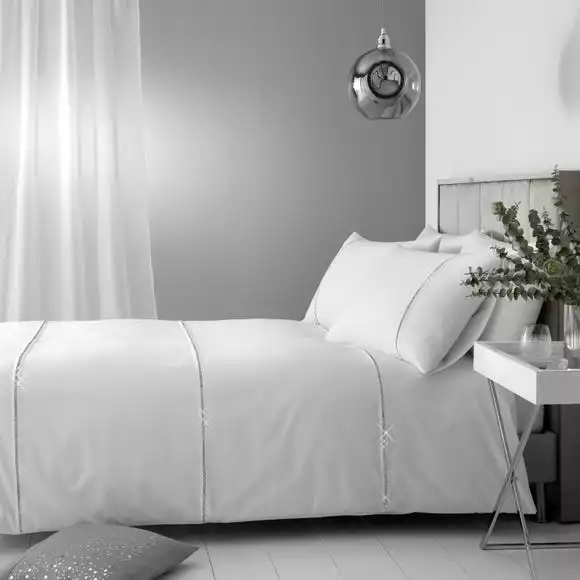 Create your dream bedroom with our glamorous sparkle bands bed linen. Showcasing a trio of glitter bands on a soft-to-touch polycotton base, this design will give your bedroom the ultimate décor update. This duvet cover set is fully reversible so you can subtly switch up your bed style when you desire. Created from easy-care and durable polycotton fabric, the set is perfect for everyday use.
