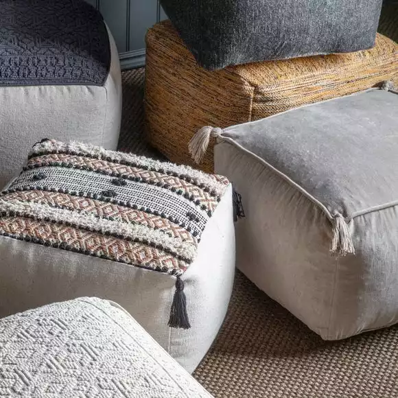 Generously filled with high-quality bead, this silver velvet handcrafted pouffe will add a touch of luxury style to your home! Simple but stylish design with a bold choice of colours available.