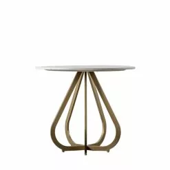 Dine with style and elegance with the Valemont Dining Table, a round table top, flowing shapes on the base and a clean marble top. Suitable for 4 seats and available in black or gold metal colour options, this table has a unique and exceptional design feature where the legs are designed to create a delightful raindrop movement without compromising on the solid base. Includes: 1 x table top, 1 x table legs & fixtures.