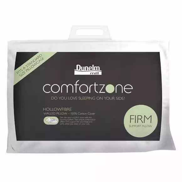 Get into your comfort zone with this unique constructed great value pillow which offers firm support for your head, neck and arms when you sleep on your side. Crafted from a 100% cotton cover and filled with hollowfibre, this walled pillow, with a crisp cotton handle, is also great for allergy sufferers.
