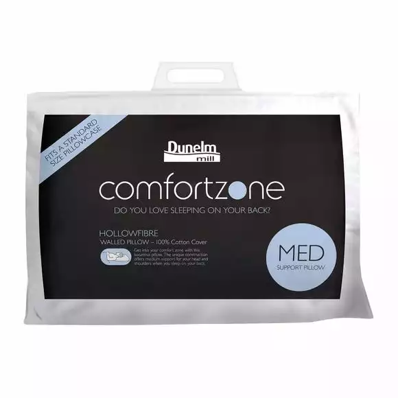 Get into your comfort zone with this high-quality, good-value hollowfibre pillow which has a unique construction offering medium support to your head, neck and arms when you sleep on your back. With a 100% cotton cover for an added crisp cotton handle, this walled pillow is machine washable for your convenience.