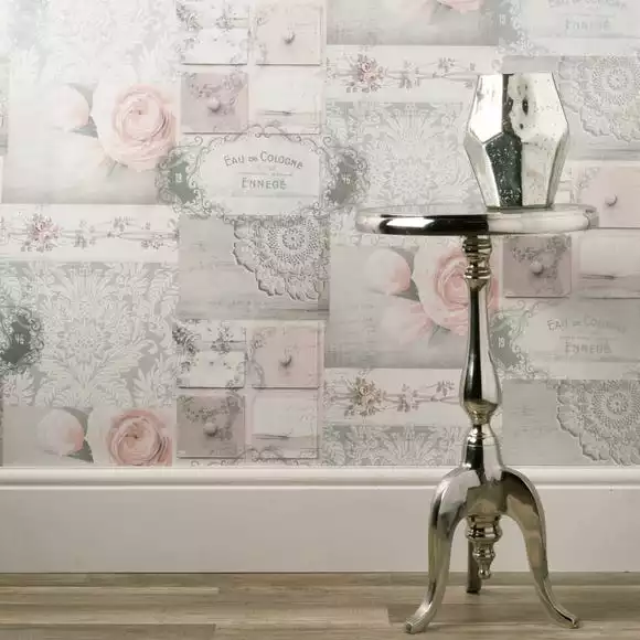 Completed in a soft blush colourway and featuring an elegant decoupage design, this beautiful wallpaper combines a delicate mix of floral and vintage motifs to create a stylish appearance. This wallpaper is ideal for bringing a charming touch to any room and effortlessly complements a wide range of colourways and decorative styles. Completed with a traditional smooth finish, this wallpaper makes a great feature wall and is easily applied by pasting the paper.