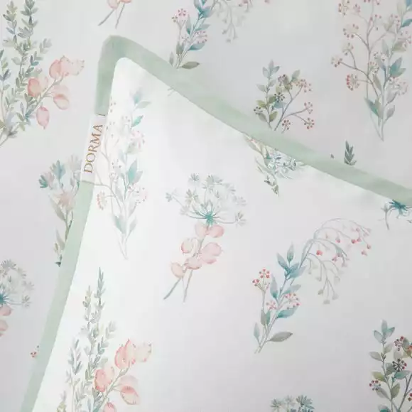 Delicate watercolour styling gives Beatrice’s posies an added element of serenity. This elegant design has been digitally printed to capture every detail on smooth and silky 300 thread count cotton sateen. The reverse features a complementary pattern in sage green, allowing interchangeable styling when desired, and both sides are brought together with flat piped edging. Pair these pillowcases with the matching Dorma Beatrice bedding set and curtains for a coordinated bedroom interior.