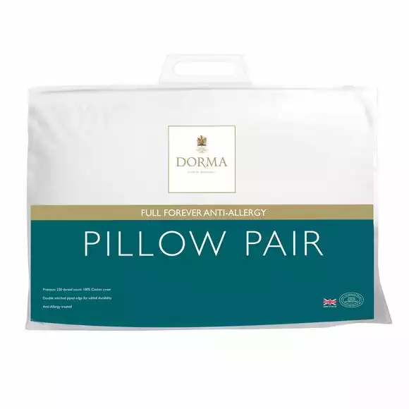 Beautifully crafted with a luxuriously crisp 100% cotton cover, these firm-support pillows from the premium Dorma range stay fuller for longer thanks to the luxurious spiral fibre polyester filling for a higher quality. With an added deluxe 233 thread count, this pillow pair has been anti-allergy treated and has a double stitched piped edge finish for ultimate durability. Keep your pillows in tip top condition for longer with our range of Pillow Protectors