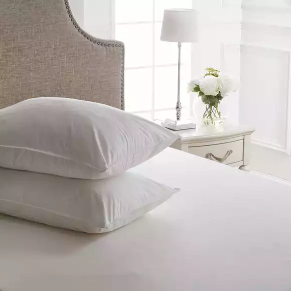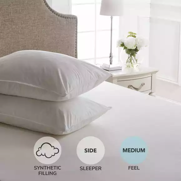 Beautifully crafted with a crisp cotton handle and a 100% cotton cover, these medium-support pillows from the premium Dorma range stay fuller for longer thanks to the luxurious spiral fibre polyester filling for higher quality. With an added deluxe 233 thread count, this sumptuous pillow pair has excellent non-allergenic properties and a double stitched piped edge finish for ultimate durability. Keep your pillows in tip top condition for longer with our range of Pillow Protectors.