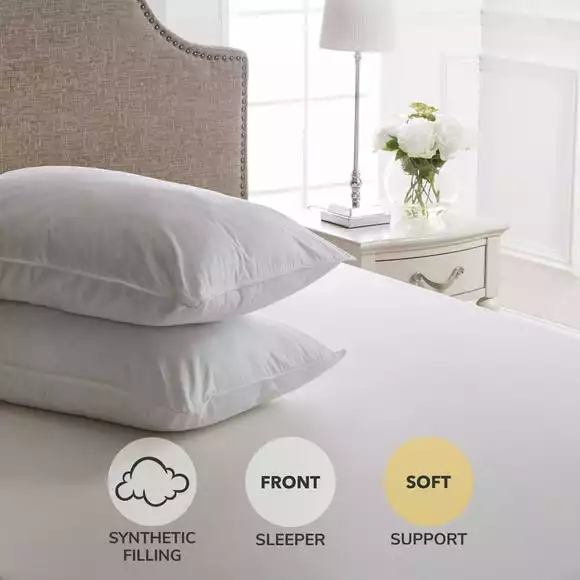 Beautifully crafted with a luxuriously soft 100% cotton cover, these soft-support pillows from the premium Dorma range stay fuller for longer thanks to the luxurious clusterfibre polyester filling for a higher quality. With an added deluxe 233 thread count, this pillow pair has excellent non-allergenic properties and a double stitched piped edge finish for ultimate durability. Keep your pillows in tip top condition for longer with our range of Pillow Protectors
