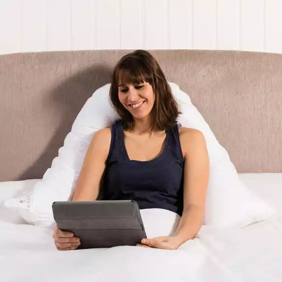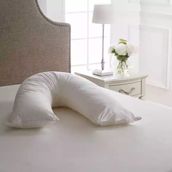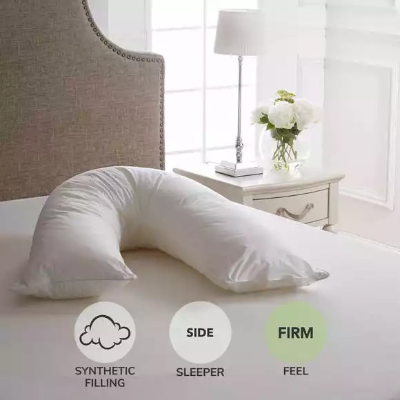 Beautifully crafted with a crisp cotton handle and a 100% cotton cover, this firm-support v-shaped pillow from the premium Dorma range stay fuller for longer thanks to the luxurious spiral fibre polyester filling for a higher quality. With an added deluxe 233 thread count, this pillow has fantastic anti-allergy properties making it ideal for allergy sufferers and side sleepers.