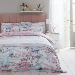 Featuring elegant trees and pergolas, this tranquil watercolour duvet cover and pillowcase set is perfect for bringing a touch of tranquillity to your bedroom. With a 300 thread count on a 10% cotton satin fabric, this bedding set is soft, luxurious and machine washable.