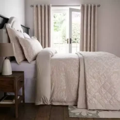 Crafted from comfortable polycotton with a polyester filling with a luxurious 240 thread count, the bedspread features a detailed floral design in a stunning champagne colourway. It is available in a choice of sizes and is machine washable.