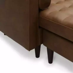 Introduce a retro classic with a modern twist into your home with the Alfie corner chaise sofa. Upholstered in a hardwearing yet soft faux leather with piped edge detailing and finished with tapered wooden legs, the Alfie is sure to be a favourite for years to come. As stylish as it is comfortable, this sofa is the perfect place to sit back, put your feet up, and unwind thanks to its foam and fibre-filled sprung seats and two matching bolster cushions to boot.