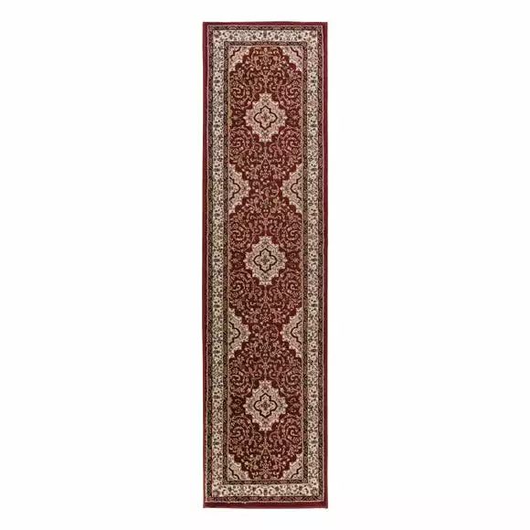 This is a hard-wearing machine-made runner. When opening, re-roll your rug pile out and leave in a warm room for 24 hours before putting in place, this will help to reduce wrinkles and curling from packing. A small amount of fibre loss is normal on a new rug. Do not pull any loose threads, please cut them carefully with scissors to remove. Avoid prolonged exposure to direct sunlight as this may cause fading of the colour. Turn your rug regularly to ensure even wear and reduce pressure marks from furniture. Before using any cleaning products on your rug, test on an inconspicuous area first to ensure it does not affect the colour. Clean spills immediately by blotting with a clean dry white cloth – do not rub as this may stain the fibres. Vacuum your rug regularly to remove everyday dirt, we recommend the use of a suction type vacuum cleaner as a rotating vacuum brush can cause damage to the pile surface. We recommend the use of an anti-slip mat beneath your rug to prevent it from slipping and sliding out of place. Latex is used on the back of this rug. Please do not leave babies or young children unsupervised on this rug.