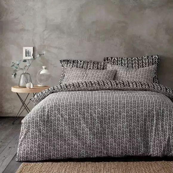 Dunelm Anthony Repeat Black 100% Cotton Duvet Cover And Pillowcase Set