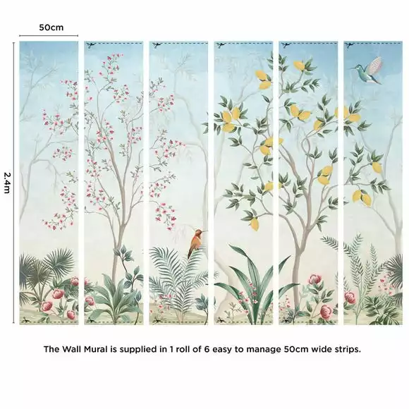 Boasting a classic vintage style complete with trees, foliage and birds, this wall mural is ideal for creating an elegant feature wall, perfect for a range of home decor styles. Boasting easy paste the wall application and a wipe clean surface, this mural is also designed to repeat for walls wider than 3m if additional mural rolls are purchased.