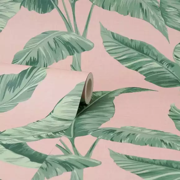 Dunelm Banana Leaf Pink Wallpaper