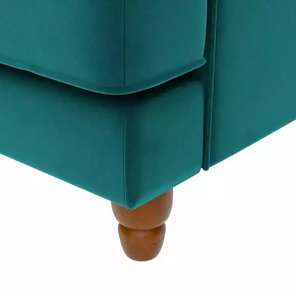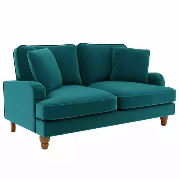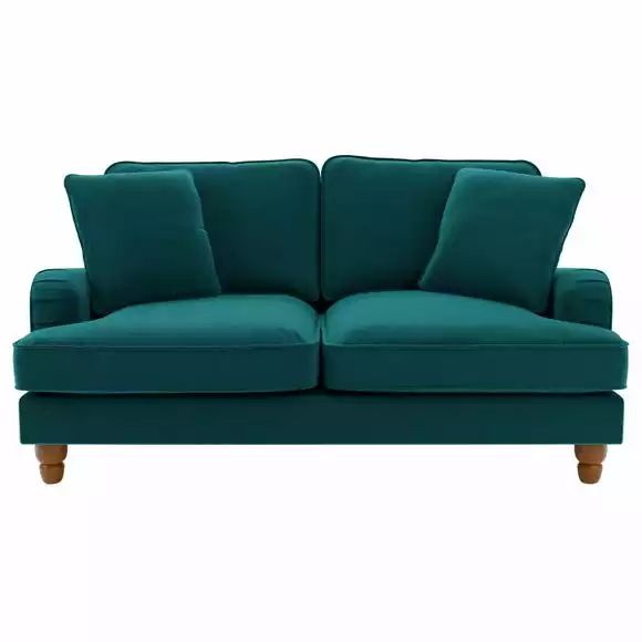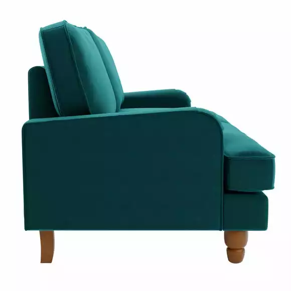 Offering a modern take on a vintage style, the Beatrice two seater sofa would make a magnificent addition to any home. This sofa is upholstered in a 100% recycled velvet fabric that’s both luxuriously soft and kind to the environment, made using a total of 114 recycled plastic bottles. Complete with a pleated arm design, piped edge detailing and turned, natural finished rubberwood legs, this sofa offers a stunning design that would bring a touch of sophistication and elegance to any room. As well as being undoubtedly stylish, the Beatrice is comfortable too, offering foam and fibre filled seats and a webbed and sprung base to provide optimal support, as well as plush fibre filled back cushions and two matching scatter cushions. Made with recycled materials.