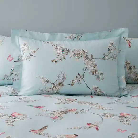 Dunelm Beautiful Birds Duck-Egg Oxford Pillowcase