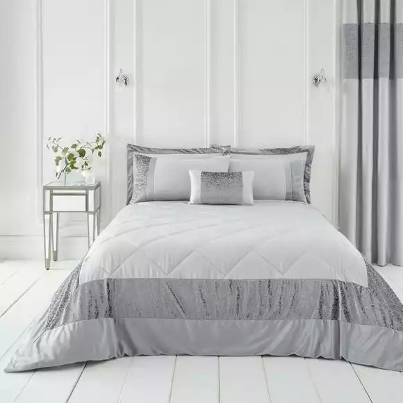 Perfect for adding a luxurious feeling to your bedding, this Beverley bedspread is stylish, embellished and machine washable. Boasting an elegant design, in a modern grey colourway, this bedspread would compliment any bedding set. Matching curtains and bedding is also available.
