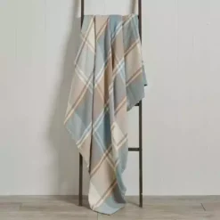 Designed in duck egg blue with complementing brown detail, this super soft throw is crafted from 100% cotton with a neat checked pattern.