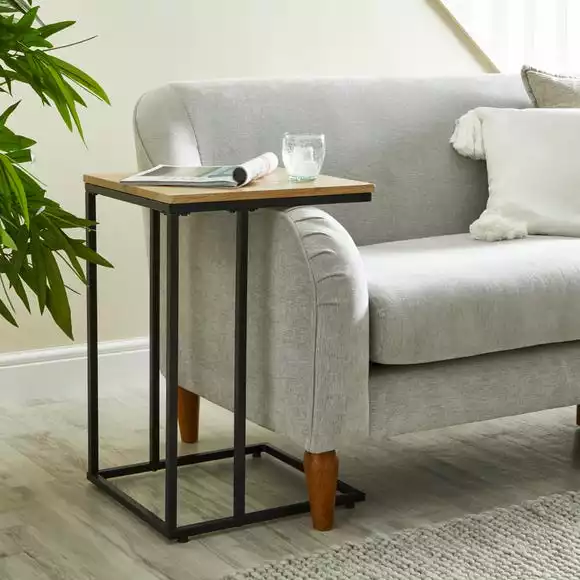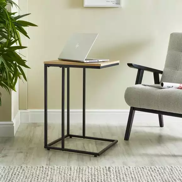 Boasting a modern and practical styling, with a trendy oak effect top, the multi-functional Charlie side table would make a great addition to any living space. The black finished metal legs are designed to slide easily beneath your sofa or armchair for use as an impromptu desk or dinner table, with plenty of space for a laptop or notebook. Ideal for creating multi-purpose spaces, this side table is perfect for compact living spaces and offers quick and easy assembly.