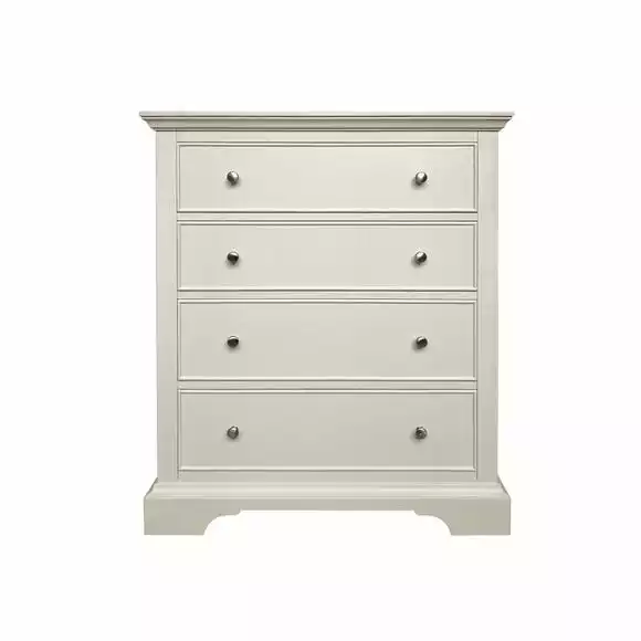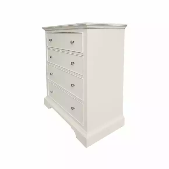 Designed to maximise storage space, this fully assembled chest of drawer features four smooth running wide drawers complete with pull-out safety stop.