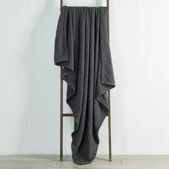 Plain and simple in design, this throw has been made with a soft chenille fabric and is crafted with a woven, basketweave structure giving it a unique textured finish.