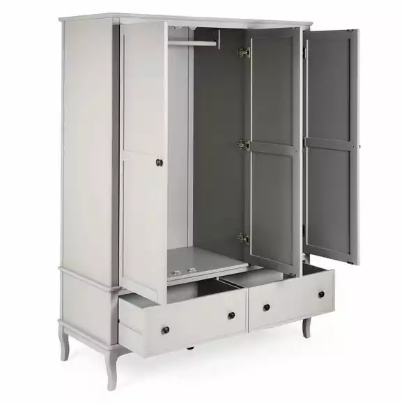 Perfect for any bedroom, the self-assembly Clara Triple wardrobe features a large hanging space and two large smooth-running drawers, complete with pull-out stops for added convenience. This wardrobe also features a second space with a second hanging rail and removable shelves, so you can customise this wardrobe to suit your needs.