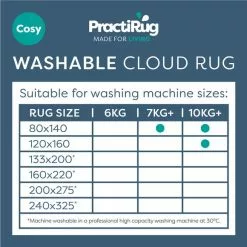 Add a touch of cosiness to your home with our fluffy Cloud Washable Shaggy rug. The plain coloured design in a beautifully soft long pile makes you feel like you’re walking on clouds. Perfect for adding a touch of cosiness in living rooms and bedrooms. Spills and dirt don’t bother the Cloud Washable rug, simply pop your rug in the washing machine and it will look as good as new! Each washable rug comes with an anti slip backing to keep your rug in place.