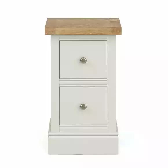 Who said luxury and style can’t be affordable? Our Compton Slim bedside fits the bill! The antique silver round handles paired with the ivory painted finish and contrasting oak veneer top will breathe a new lease of life into a country inspired home. The chunky farmhouse style has been compacted into a slim bedside perfect for smaller spaces. With no assembly needed, all that’s left is to style your bedside with your favourite décor pieces and a lamp to finish it off.