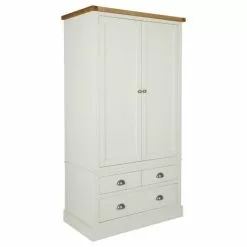 Offering ample storage space, this self-assembly wardrobe features three spacious drawers and a double door cupboard, equipped with a hanging rail.