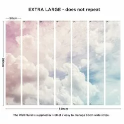 This stunning wall mural is features an inspiring cloud design in a fresh pink and blue colourway. Perfect for creating a beautiful feature wall and adding a natural, airy tone to your home, this mural is crafted from quality materials for improved longevity. This on-trend mural can be easily applied and re-positioned by pasting the wall and can be sponged clean for easy care.