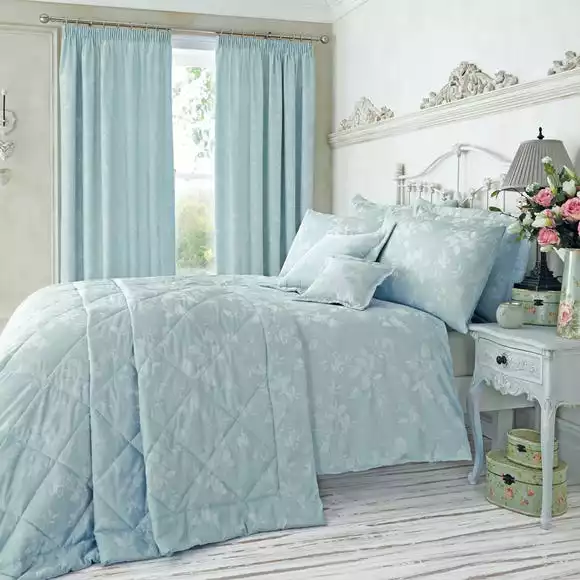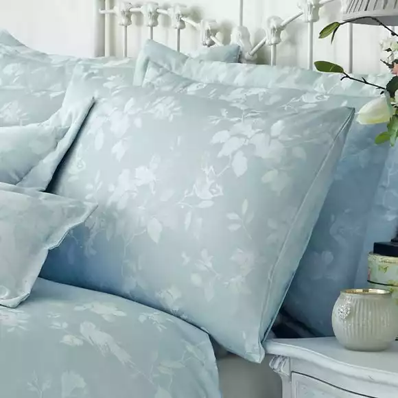 Embellished with floral and songbird patterning on a duck egg blue base, this jacquard standard pillowcase is crafted from a soft polycotton bledn and will create a light calming touch for your bedroom.