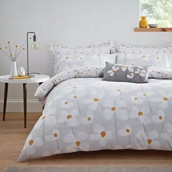 Elements Lena offers a modern daisy print design to add a feminine touch to the bedroom, with a stylish and fun geometric pattern reverse providing two looks in one. Crafted from a quality polycotton blend or 100% cotton, Lena offers a luxury feel with naturally soft and breathable qualities for an effortless night’s sleep, and looks fantastic paired with our Elements Lena daisy oxford pillowcases and cushion.