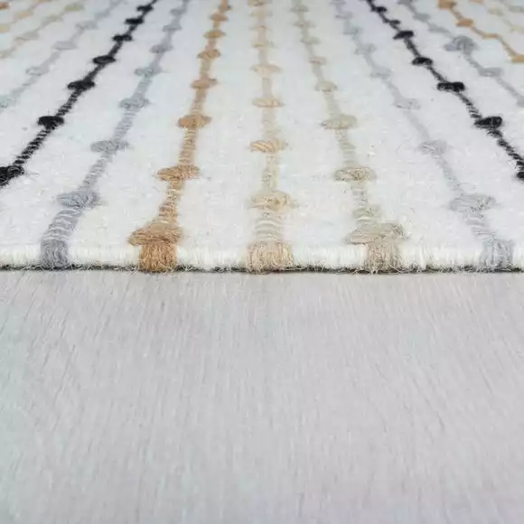 Choose pretty pastels or statement brights with the new Elena Stripe Rug. Hand-loomed by skilled rug artisans, the Elena uses a knotted design to add texture underfoot. In 100% wool, maximising warmth and sound insulating qualities, the Elena rug is perfect for completing a bedroom.