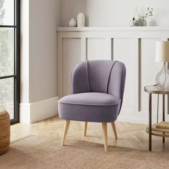 Upholstered in a soft touch velvet fabric in a selection of stylish colourways, the Elsie cocktail chair boasts a compact design, making it perfect for adding a splash of colour to any space. Complete with a soft, foam-filled seat and sturdy solid wood legs, this chair boasts great value and offers easy assembly.