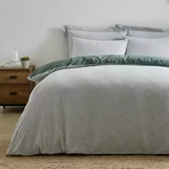 Dunelm Enzo Chambray Forest Green 100% Cotton Duvet Cover And Pillowcase Set