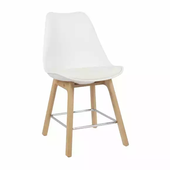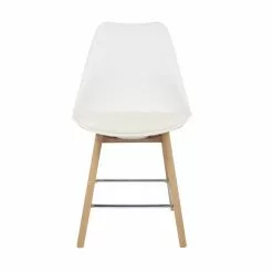 Boasting a stunning modern design, this Erik dining chair will add a modern touch to your dining table. Featuring a bright white colourway, this stool is timeless and elegant. Beautifully designed with a Polypropylene chair and a PU padded seat for extra comfort, paired with stylish and study beech wood legs and a metal foot rest.