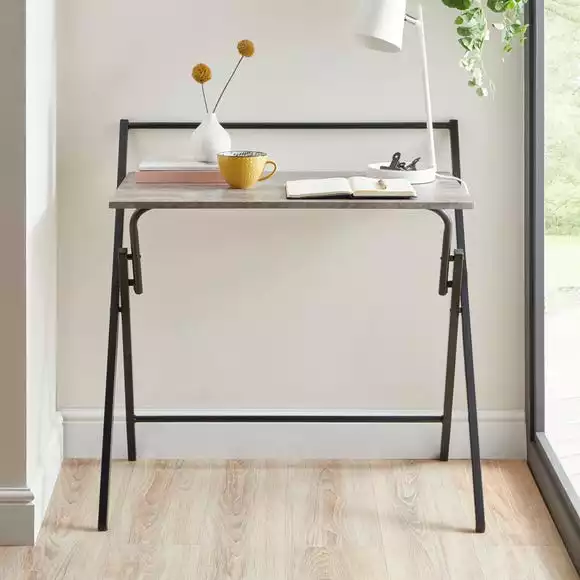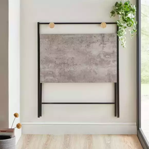 The perfect option for appartment living or smaller homes, the Evelyn folding desk features a spacious, concrete effect worktop, paired with a black metal frame for a trendy modern look. This convenient desk can easily be folded flat to allow for easy storage when not in use, allowing you to make the most of your space and set up a workspace anywhere in your home.