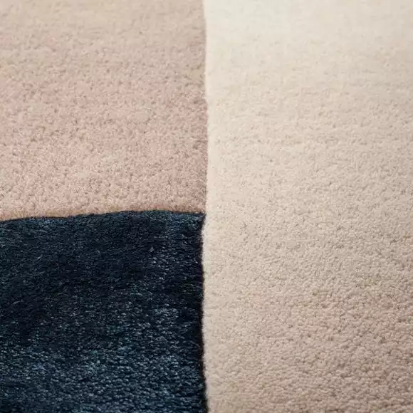 Organic shapes and muted blue tones in panels of shimmering viscose, make a simple yet striking statement with the Riko Wool Mix rug. We aim to create an impactful floor by pairing rich jewel shades with super-soft lustrous viscose, for a luxe look. Crafted by rug artisans in India, using a blend of wool and viscose for maximum warmth and softness underfoot. We recommend using the Riko rug to define a contemporary living space.