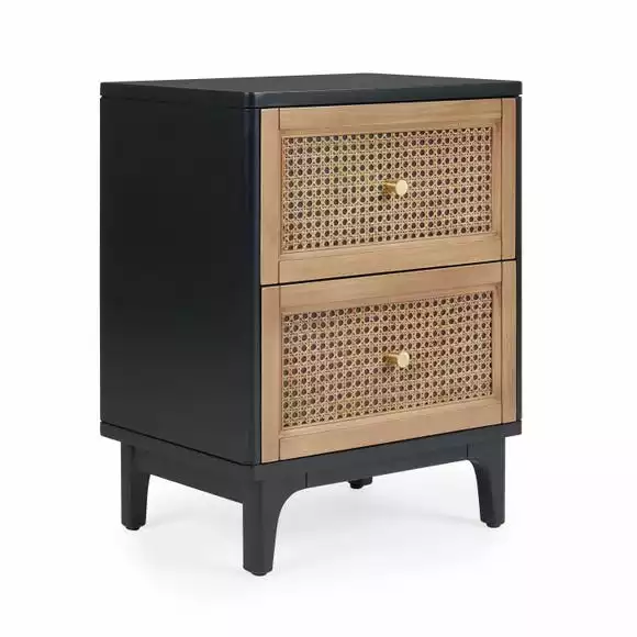 Dunelm Franco 2 Drawer Bedside Table, Black & Cane