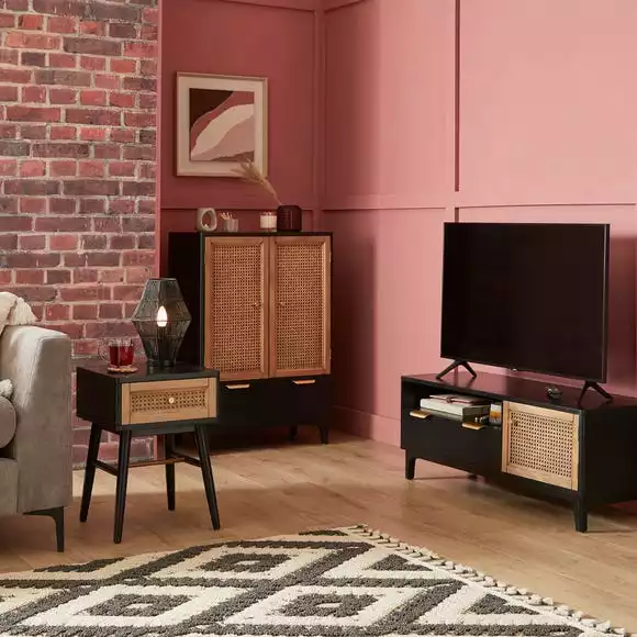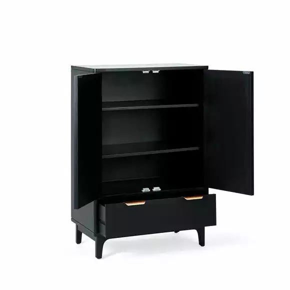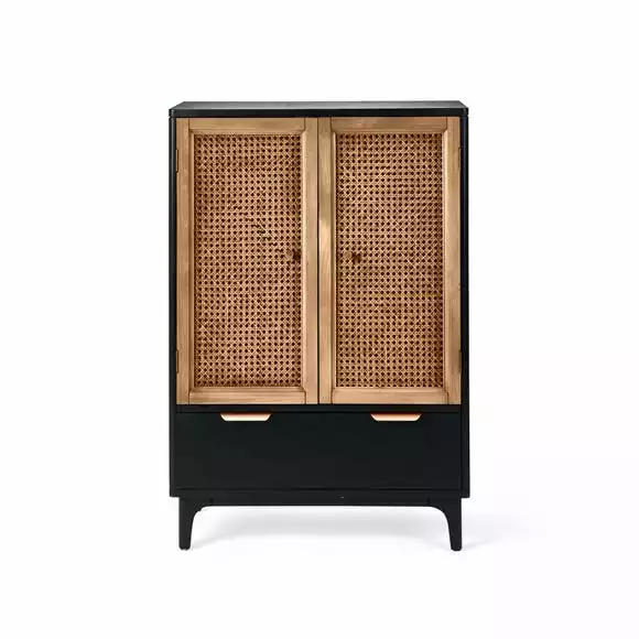 Characterised by the stunning natural rattan fronts and contrasting black surround, the Franco collection brings a modern take on a retro design. Perfect for any contemporary or global styled home, this furniture range is completed with brushed gold effect handles, adding a touch of luxe styling.