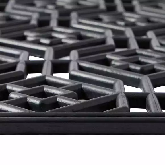 Made from 100% rubber, this geo rubber doormat features an elegant design fashioned in a plain black colourway and offers mould resistant qualities, perfect for outdoor uses.