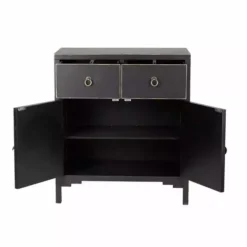 Featuring a beautiful Chinese-inspired design, the Hanna chest is a versatile storage solution that will add a unique touch to any room. Designed with a beautiful distressed black finish and contrasting gold edges, this exquisite chest features traditional Chinese style handles with a loose pin lock mechanism and rustic gold finish.
