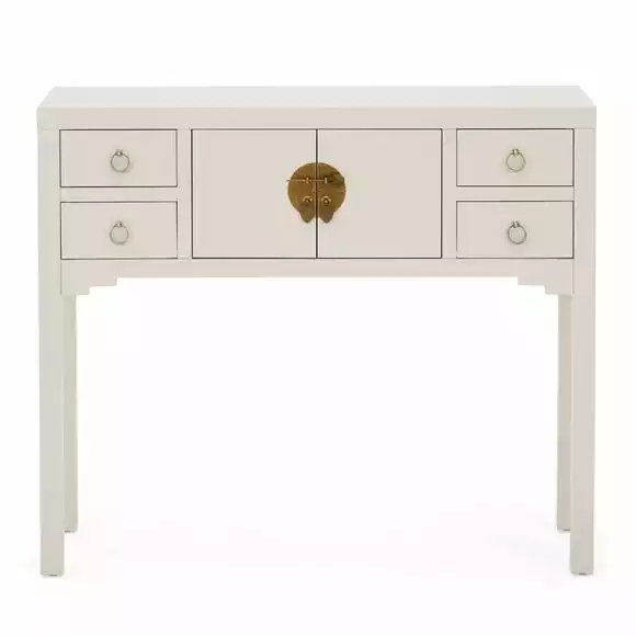 Featuring a beautiful Chinese and Japanese inspired design, the Hanna range offer a versatile storage solution that will add a unique touch to your home. Designed in a beautiful oyster finish colourway and a contrasting distressed gold detailing, this exquisite range features authentic oriental handles with a loose pin lock mechanism, perfect to glam any room.