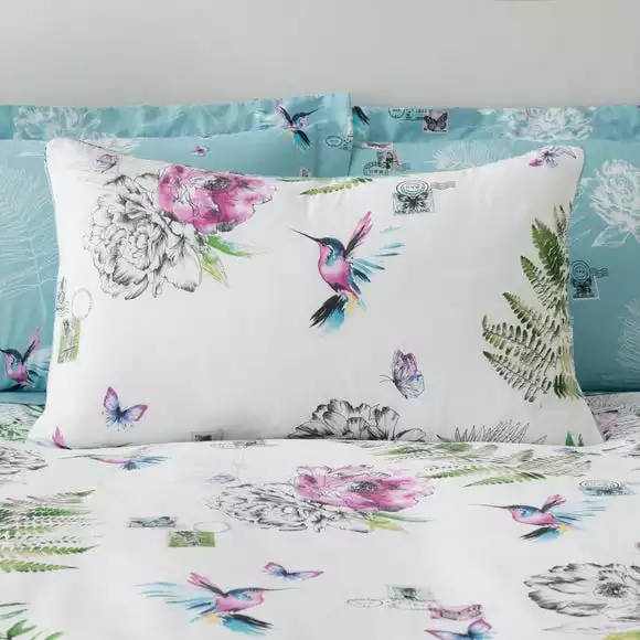 Dunelm Heavenly Hummingbird Reversible Duck Egg Duvet Cover And Pillowcase Set