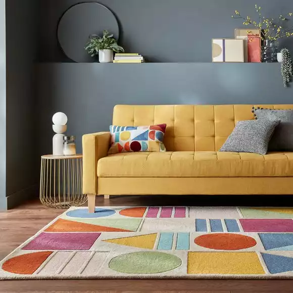 Make a statement with the Hex Geometric rug. It has a joyful, multi shape design in bright colourful shades. Hand-crafted by skilled rug artisans, the Hex Geometric rug is made from 100% wool which maximises natural warmth and sound insulating qualities. Hand-finished using cut and loop techniques to add dimension and texture. Use as a statement piece, bringing an element of fun to the home and a smile to your face.