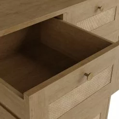 Bringing a modern flair to a retro style, the Indi range is perfect for any contemporary or global styled home. Characterised by the stunning rattan fronts and brass knobs, this range boasts a 100% mango wood construction and minimal assembly. Perfect for bringing a warm neutral feel to your home, this stunning 5 Drawer chest provides space to keep your bedroom organised and clutter-free. Crafted from sturdy, solid mango wood, this piece is built to last.