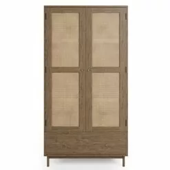 Bringing a modern flair to a retro style, the Indi range is perfect for any contemporary or global styled home. Characterised by the stunning rattan fronts and brass knobs, this range boasts a 100% mango wood construction and minimal assembly. Perfect for bringing a warm neutral feel to your home, this stunning double wardrobe features 2 rattan doors and 1 drawer providing space to keep you home clutter free. Crafted from sturdy, solid mango wood, this piece is built to last.